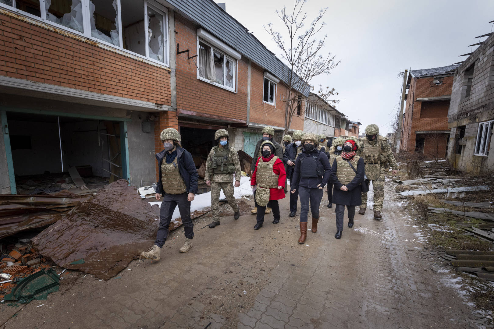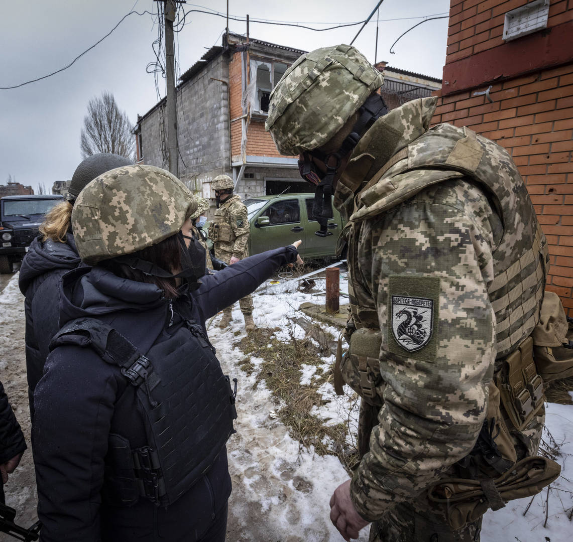 Im Zuge ihres Besuchs in der Ukraine begab sich Außenministerin Annalena Baerbock auch in die Nähe der Frontlinie. Mit ukrainischen Militärs besuchte sie dabei den Ort Schirokino.
