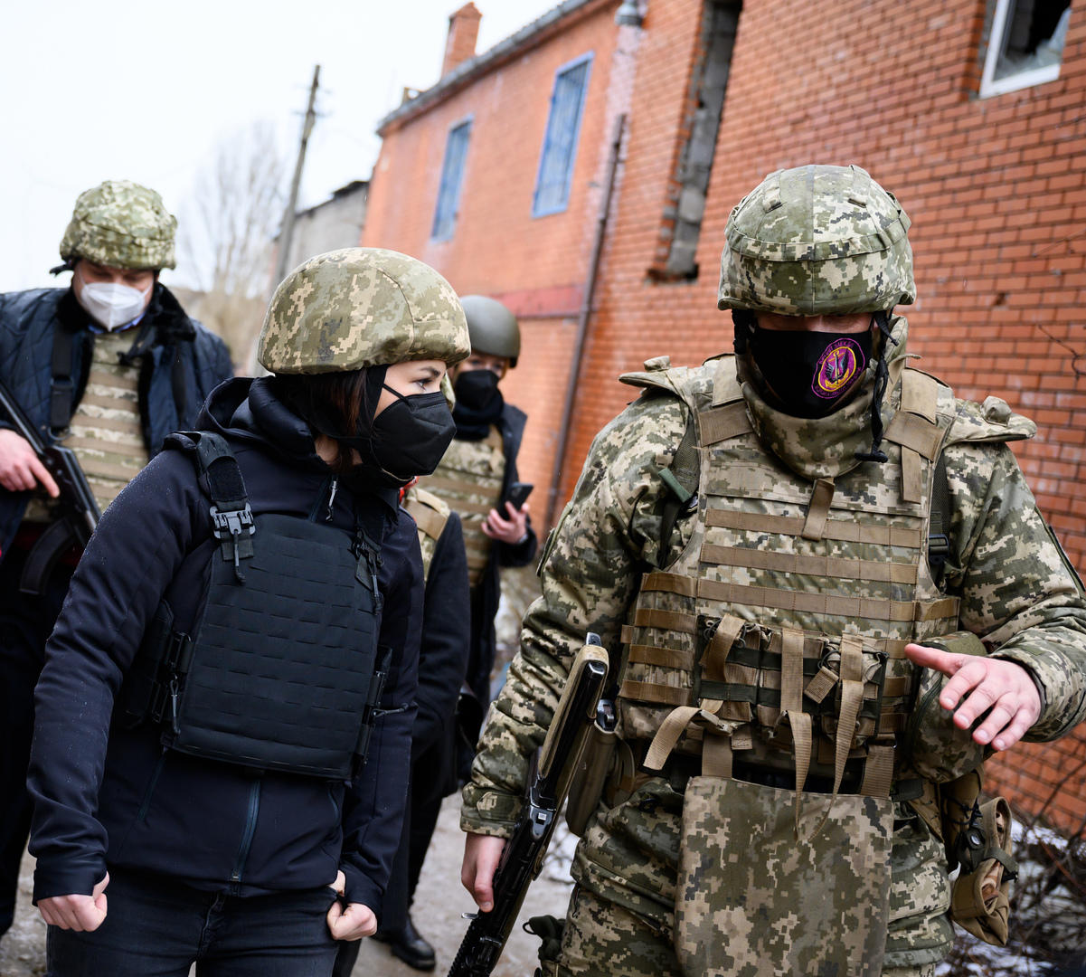 So berichtet die Zeit über diesen Besuch (wiedergegeben wie im Original): "Geschützt mit Helm und schusssicherer Weste hatte sich Baerbock von einem Kommandeur der Regierungstruppen die Lage im Donbass erklären lassen und den Ort Schyrokyne besucht. Danach sagte sie: 'Einstmal ein Ferienort gewesen, jetzt ein Zeugnis dessen, dass wir mitten in Europa Krieg haben.'"