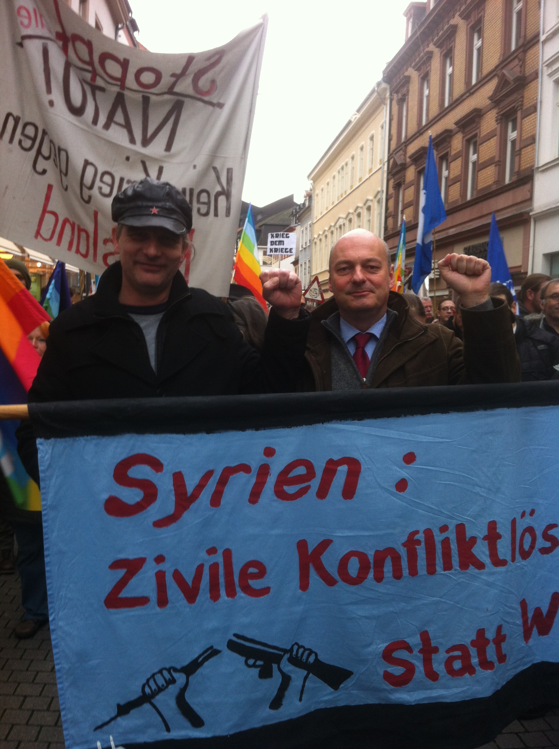 Da die Achse der Mahnwachen sich von Jürgen Elsässer über jenen unter Pseudonym arbeitenden Journalisten Kashefi und den aus dem politischen Nichts plötzlich aufgetauchten bundesweiten Organisator der Montagsmahnwachen Lars Märholz zu Diether Dehm und Wolfgang Gehrcke erstreckte, liegt für mich der Verdacht, daß mit dieser Art von Schulterschluß eine Querfront geschaffen werden soll, nahe.