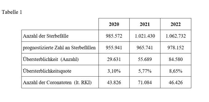 Auch Telepolis leistete ein Meinungsbeitrag zu diesem Thema. https://www.telepolis.de/features/Corona-und-kein-Ende-Raetselhafte-Uebersterblichkeit-im-Jahr-2022-9066257.html?seite=all
