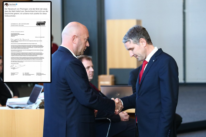 - In einem Brief bot Höcke den Vorsitzenden der beiden Parteien eine "Expertenregierung" mit der AfD oder die Tolerierung einer Minderheitsregierung durch die AfD an.