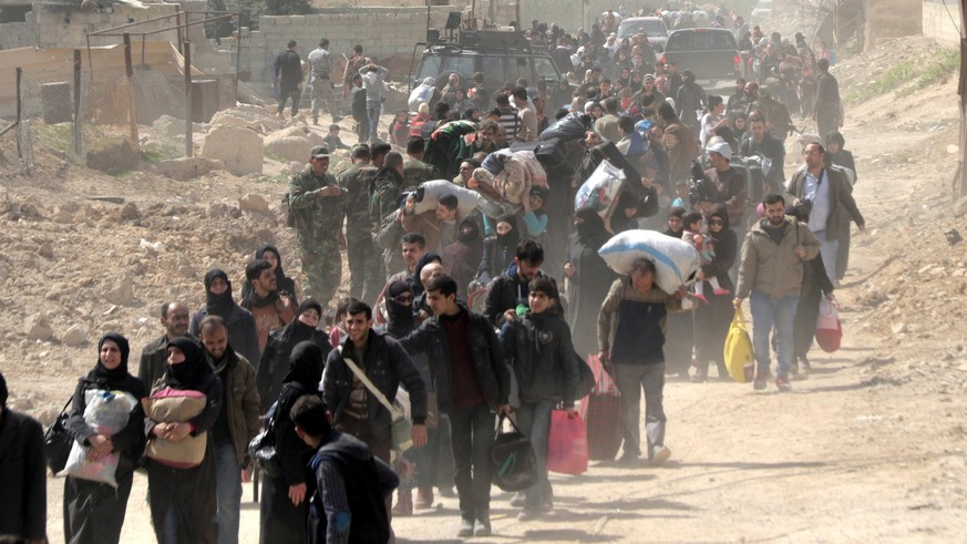 Mitte März entkamen die ersten Zivilisten der Hölle, zu der Ost-Ghouta geworden war, und liefen über die Frontlinie in Regierungsgebiet. Schließlich waren es mehr als 100.000 Menschen, die sich auf diese Weise in Sicherheit bringen wollten. Im Staatsfernsehen sagten einige von ihnen, die Aufständischen hätten sie mit Waffengewalt daran gehindert, Ost-Ghouta zu verlassen.